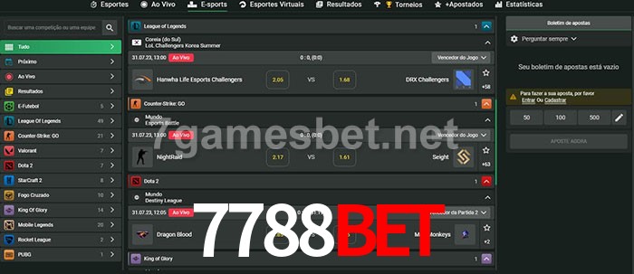 O 7788bet oferece uma grande seleção de opções de apostas em e-sports com probabilidades competitivas